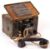 An original WWII Second World War era army military field telephone ' F ' Mk.1. Manual ringer, within its original green painted wooden box, with instruction notice to lid.