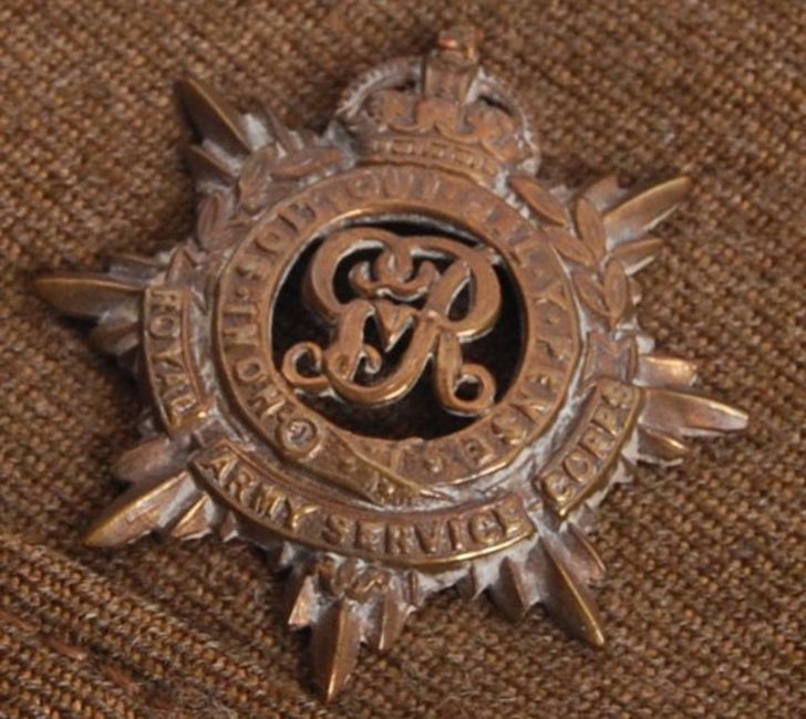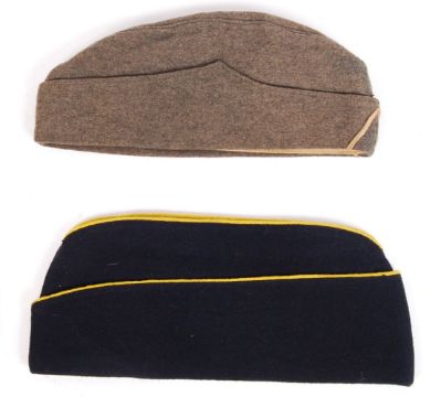 A group of 4x original WWII Second World War British soldiers uniform caps, one of which with Army Service Corps badge to side.