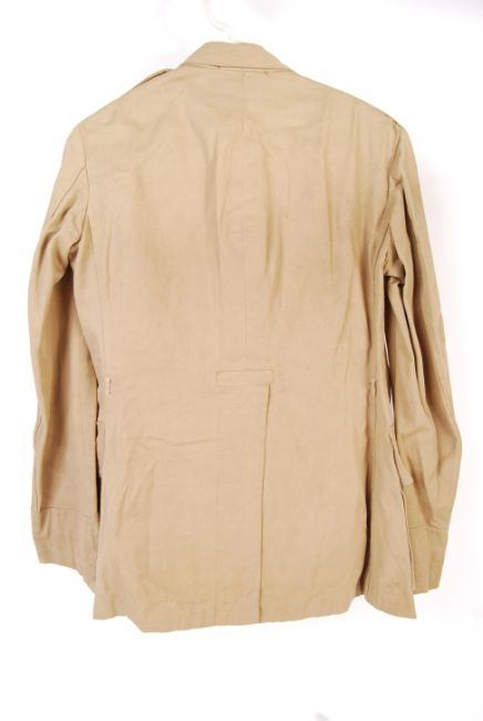 A rare WWII Second World War khaki drill service dress uniform (tunic and trousers). Named to one H.C.N. (Harry) Lee - famous 1930's British Tennis Player. KC General Service buttons, with Captain's pips to shoulder. Matching trousers. Rare and interesting uniform.