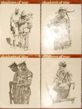 A collection of 4x Shadows Of War limited edition prints relating to Rhodesia Africa and signed by Peter Badcock. Each Print being originally from the limited edition Shadows Of War book by Peter Badcock. Prints Included; Night Guard 121/350, The Survivors 121/350, Pause On Patrol 121/350 and The Mourners 121/350. Measures; 63 cm x 49 cm. More prints in lots 242 & 252.