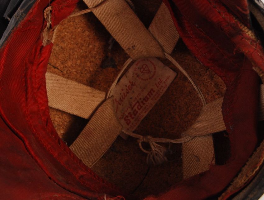 A charming vintage 1950's / 1960's Stadium Ltd made ' The Cruiser ' motorcycle helmet. Decorated in period ' Norton ' motorcycle livery. Complete with inner liner, and original makers label present to the inner cork lining. Rare.