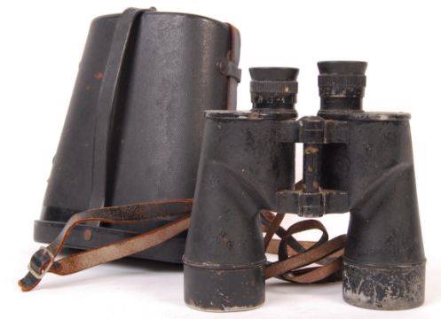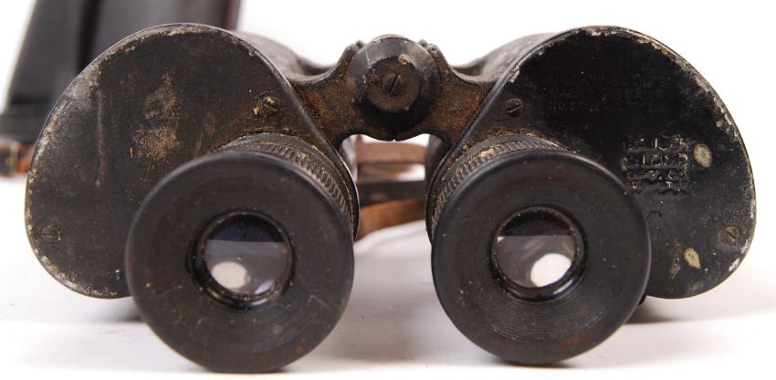 A pair of WWII Second World War US Navy / Naval issue 1941 dated binoculars. Bausch & Lomb makers marks to eye piece, with broad arrow. 7x50. Within their original case. Cosmetic wear and tear, but optics in working order.