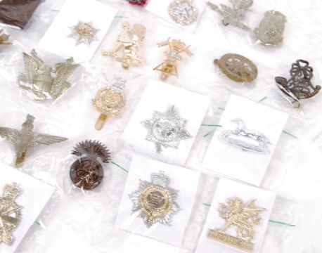 A large collection of x30 assorted military cap badges - from various 20th century conflicts. Badges include: Parachute Regiment, Queen's Own Hussars, Wessex Regiment, Volunteers, and others. Largely contemporary, but some older included.