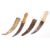 A pair of 20th century Turkish Ottoman Jambiya daggers each having shaped horn handles with fitted curved short blades and islamic design, one with a leather stitched snake skin scabbard and the other having one side snake skin to front and crocodile skin to the back. Measures; 32cm