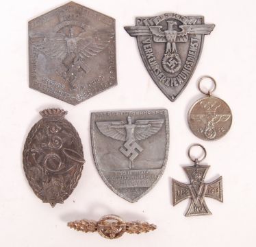 A collection of x7 assorted WWII Second World War related German Third Reich Nazi award badges and plaques. All reproduction. To include; 1930 NFSK plaque, Fliegerkorps plaque, clasp medal, Verkehrserziehungsdienst and others. Some with makers marks to verso.