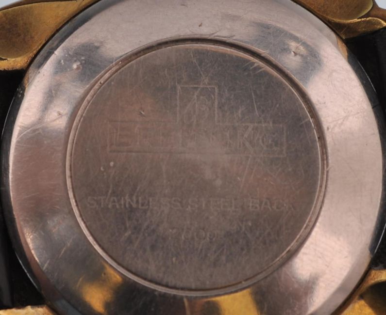 A vintage 20th Century 1960's Breitling Geneve Top Time Chronograph Gentleman's watch. The silvered dial having gilt baton numerals and faceted hands. Twin subsidiary dials with chronograph buttons and winder to side of gilt square case. Set to a black leather strap. Case measures 36mm.
