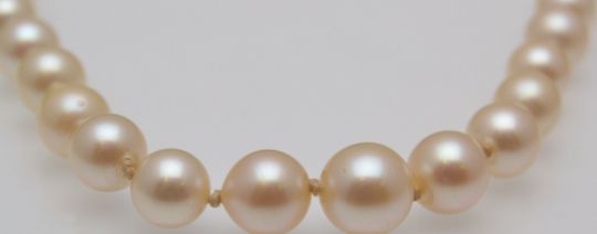 An early 20th century cultured pearl and jadeite jade necklace. The necklace strung with good cultured pearls having a fine carved jadeite clasp. Measures approx 19 inches.