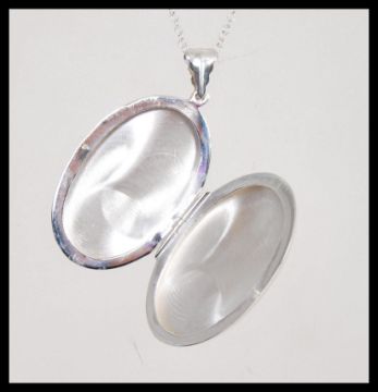 A stamped 925 pendant locket having a raised horse to the front of the locket and a horseshoe set with rubies on a silver chain having a lobster clasp. Weight 19.7g.  Chain measures 18 inches, locket measures 2 1/2 inches.