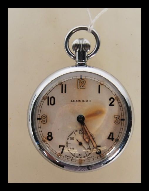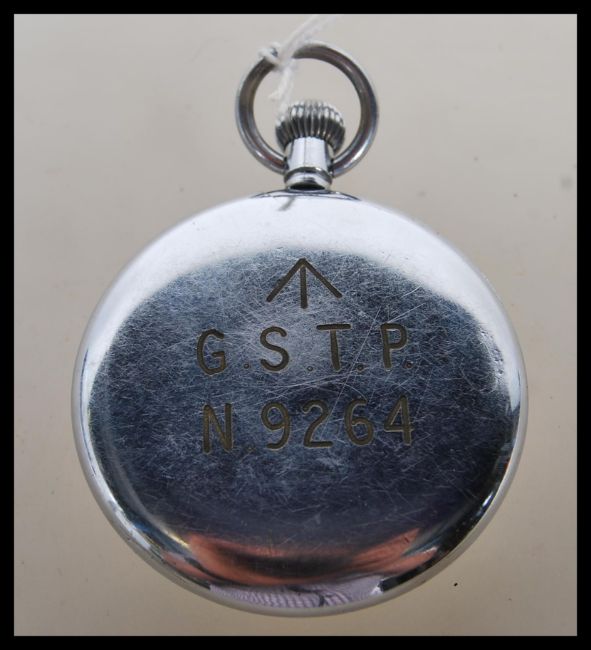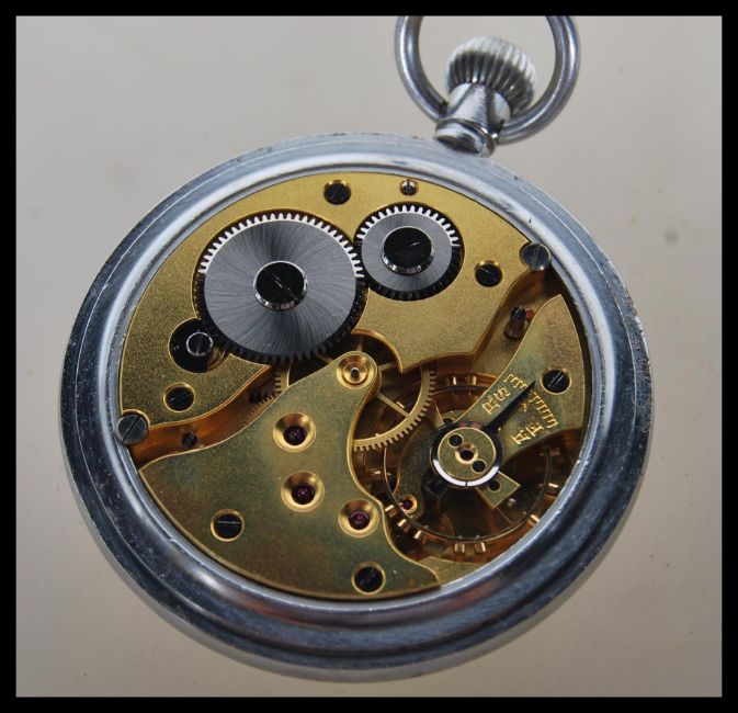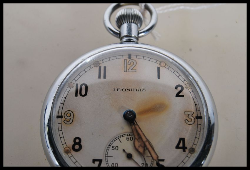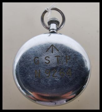 A 1930's  Leonidas Jaeger Le Coultre faced Art Deco General Services military open faced pocket watch. Good dial with sub dial and shaped hands. Crown winder with GSTP No 9264
