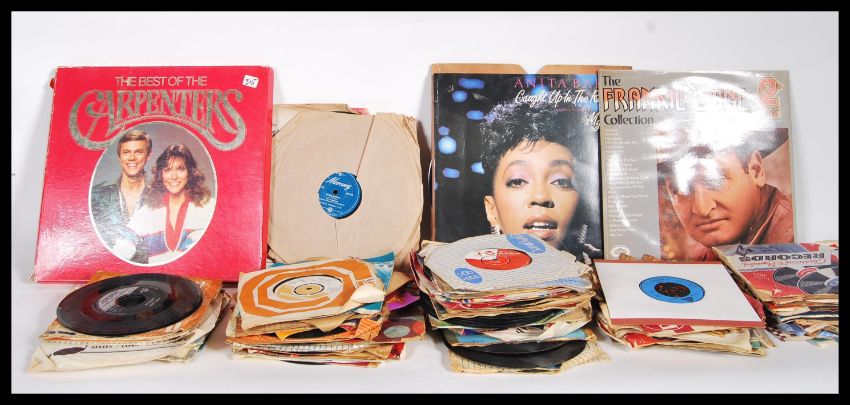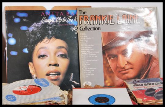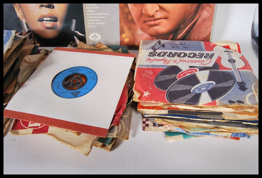 A collection of 45rpm vinyl 7" singles featuring various artist to include Boney M, Elvis Presley, The Kinks, Gladys Knight And The Pips, Eddie Cochran, Buddy Holly, Gene Vincent, David Bowie and many others. Also a small selection of 78's.