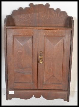 A 19th Century Victorian oak hanging box fitted with a single panel door together with an oak drop flap dining table and an oak occasional table raised on turned supports united by stretchers. Largest item measures 74cm high x 56cm wide x 44cm depth.