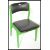 A set of four retro 20th Century Danish inspired dining chairs, upholstered seat pads and backrests raised on angular tapered frames having a later painted finish. Measures 81cm high x 47cm wide x 47cm depth