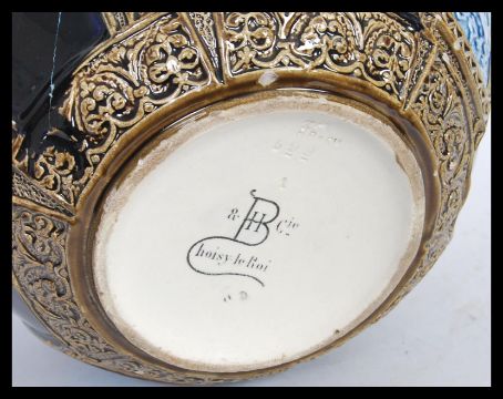 A 19th century French Houtin & Boulenger Choisy Le Roi faience large planter with blue colourway being stamped to the underside.