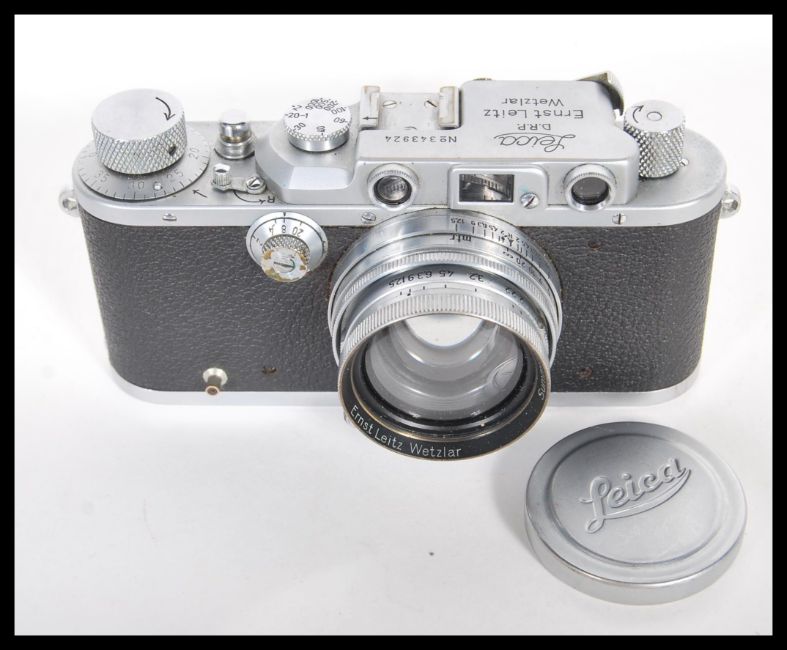 A Leica lll D.P.R Rangefinder chrome camera by Ernst Leitz Wetzlar Germany, Serial number 343924. Having Ernst Leitz Wetzlar Summitar f=5cm 1:2 lens, serial number 522930 ( lens having original cover ).