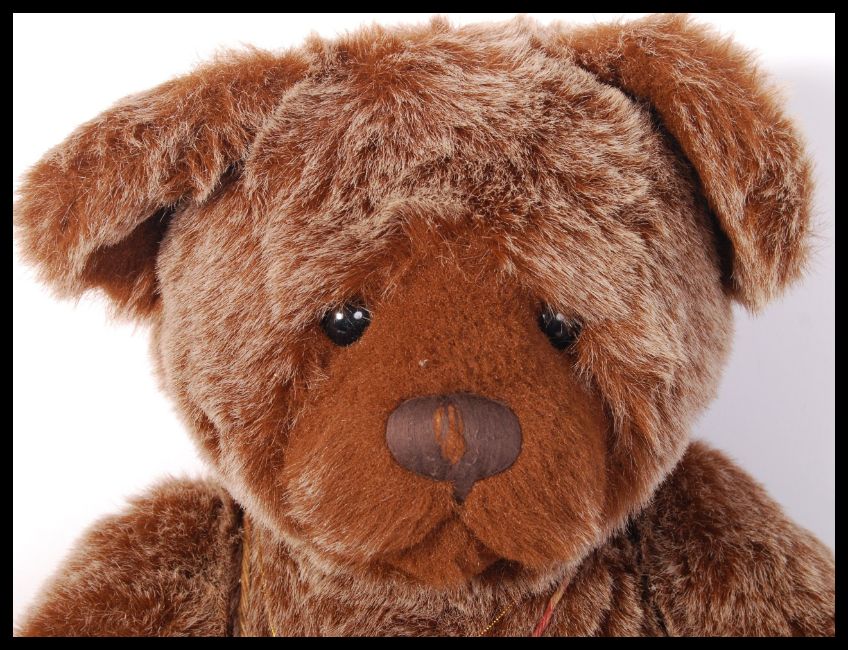 A large Charlies Bears teddy bear ' Drew ' CB083899 - Exclusively Designed by Isabelle Lee. Brown tinted mohair, with felt pads. Complete with tags and necklace. Larger sized bear - measuring approx; 74cm tall.