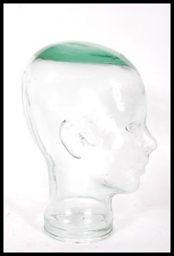 A vintage retro 20th century advertising shop display glass phrenology type head of clear glass construction with pressed features.