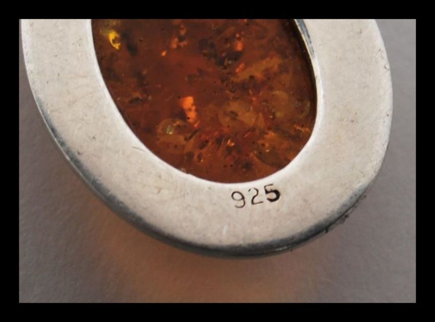 A stamped 925 silver bookmark having an amber cabochon finial. Weight 7.5g.Measures 8cm wide.