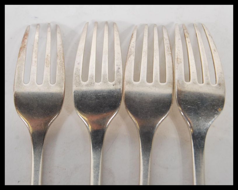 A set of four Thomas Wilkes Barker silver Georgian forks being hallmarked for 1807. Weight 132.2g.