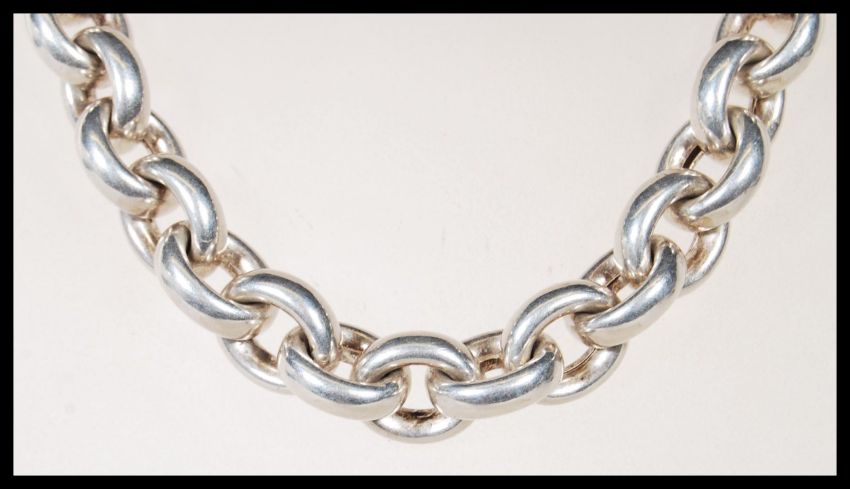 A stamped 925 silver necklace chain having very large belcher links and a spring ring clasp. Total weight 137.2. Measures 20 inches.