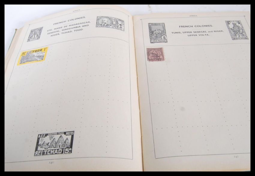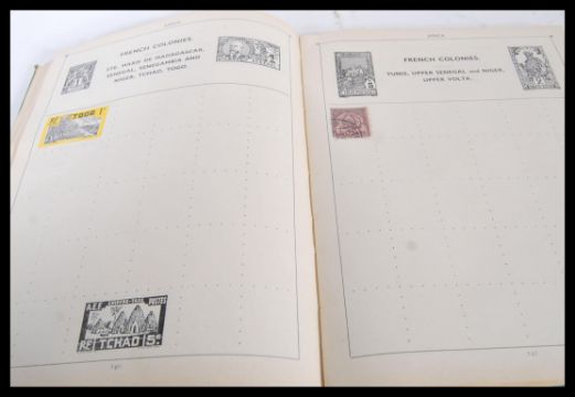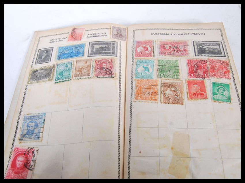 A collection of stamps dating from the 19th Century onwards across four albums to include Victorian British stamps including eight penny reds, European stamps including Germany Austria, France, American and Canadian stamps, African stamps, Indian stamps etc. Most being early 20th Century, with a good quantity of 19th Century, set within Edwardian and Art Deco albums.
