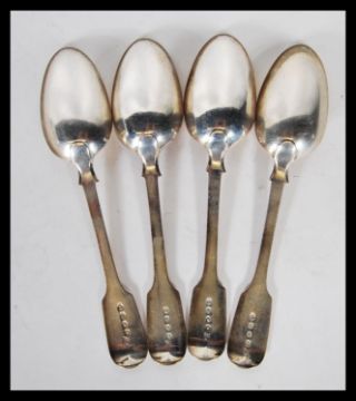 A group of four mid 19th Century Victorian silver spoons by Samuel Hayne & Dudley Cater, hallmarked London 1841. Weight 207g.