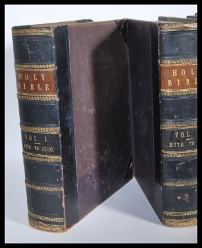 A late 19th early 20th Century six Volume Set of Matthew Henry's Commentary on the Whole Bible, each volume retaining all original plates.