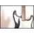 A vintage Marlin electric stratocaster style six string electric guitar having a black body with chrome tuning pegs. In working order.