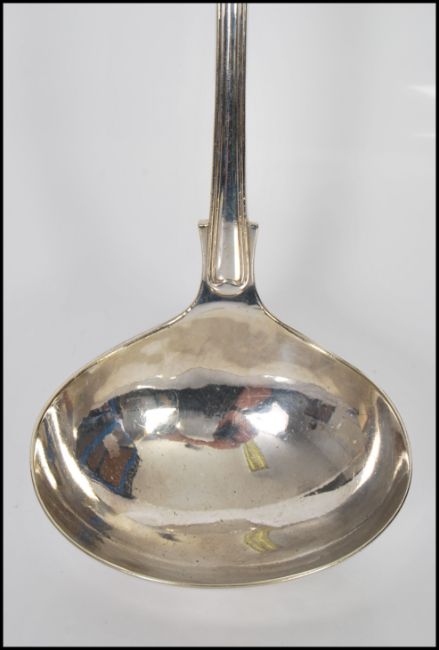A large A1 silver plate Kings pattern serving ladle, stamped Mappin and Webb, S and L to verso.