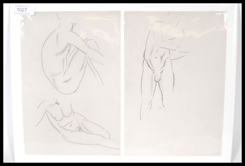 Eric Gill (1882-1940) A pair of male nudes from Eric Gill First Nudes Neville Spearman London 1954. Measures 27cm high by 37cm width.