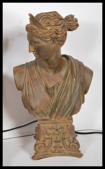 A collection of items to include a vintage style  walnut cased radio, a Smiths mantel clock, a composite bust of classical form, wooden pig etc.