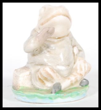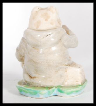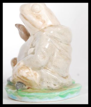A 20th Century believed Beswick prototype ceramic figure of jeremy Fisher sitting on a lillypad. Unmarked.  Measures 8 cm high.