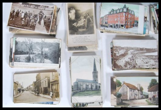 A collection of early 20th Century postcards mostly black and white and coloured scenes from UK beach resorts including Whitstable, Herne Bay, Ramsgate, Broadstairs within a green album along with a selection of loose postcards many of which are addressed to the same addressee in Bristol, along with an album of ' Flowers and Blooms of the Holy Land ' flower pressings.
