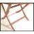 A contemporary teak wood outdoor garden table of circular form, raised on  a folding X-frame base for easy storage. Measures 73cm high x 110cm diameter