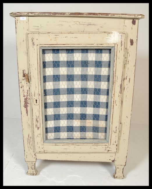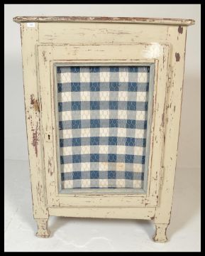 An early 20th century country house large painted white pine meat safe locker. The cupboard of large form with mesh panel to single door. Having single shelf to the interior. Measures 128cm high x 89cm wide x 50cm depth.