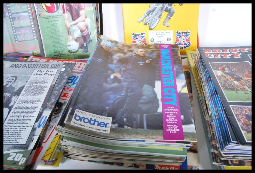 A collection of 20th Century football programs, mostly Bristol City. To include other team such as, Arsenal, Manchester United, Liverpool, Southampton, Benfica F.C, Peterborough, Aston Villa etc, all across F.A Cup, League matches. Along with International match programs mostly England. Also a small quantity of Bristol Speedway programs.