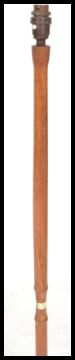 A pair of retro 20th Century teak wood standard lamps raised on terraced bases with turned columns. Measures 131cm high.