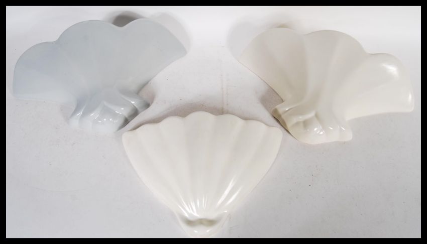 A vintage 20th century cream glazed pottery plant vase / table centerpiece of smaller form, influenced by florist and designer Constance Spry for Fulham Pottery having twin scrolled handles on oval base. No marks or stamps present. Measures 15cm high x 11cm diameter.