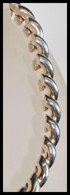 A stamped 925 silver necklace chain having a large twisted link design and a tongue in groove clasp. Total weight 78.1g. Measures 16 inches.