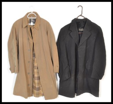 Vintage 20th Century clothing- A Burberry Mackintosh cream Trench coat having check lining, together with a pre war Burtons coat being black in colour.