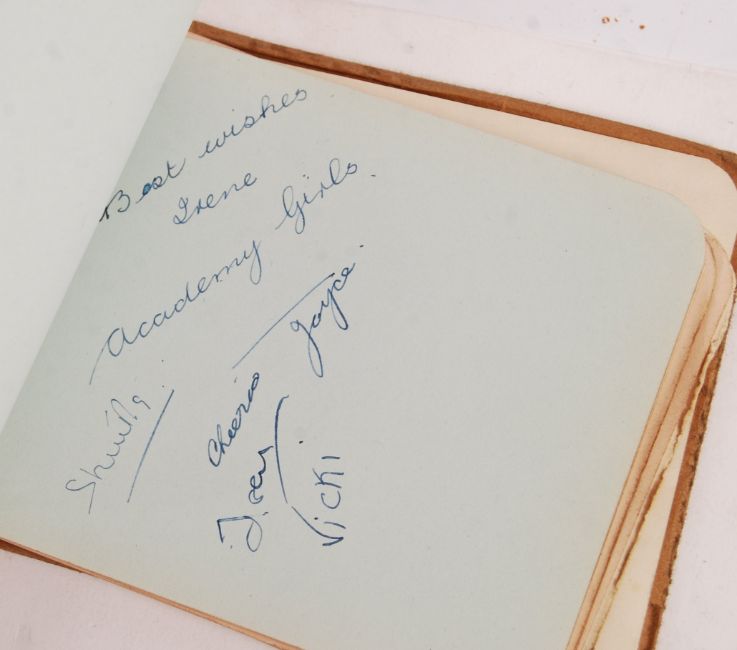 A collection of x8 Bristol related 1920’s / 1930’s / 1940’s autograph books, largely all period Variety / Film and Stage stars. Mostly obtained from the Princes Theatre or Theatre Royal, Bristol in the 1930’s and 1940’s. Hundreds of signatures, some include: Leige Wallington, Fred Baron, Rex Arthur, World Champion High Kicker, Jack Crawford (some sports), Kathleen O’Hara, Martin Harvey,  Teddy Brown, Winnie Seymour, Eddie Seymour, Sybil Thorndike, Red Fred, Seymour Hicks (British Actor), Reginald Redman, Randolph Sutton, Violet Vanbrugh,  Nita Croft, Theatre Royal Bristol 1936 Pantomime cast, Norman Brooks, Peggy Ann Wood, Victor Ring, and others. One autograph book appearing unrelated, from a Manchester autograph collector, with names including: David Lloyd George (Prime Minister) and his wife, Margaret, a facsimile letter from Clementine Churchill and various other stage stars. An interesting collection.