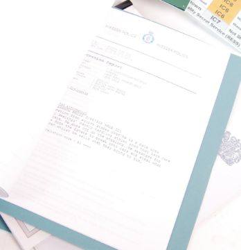 Broadchurch: A great collection of original props & set dressing items from ITV's ' Broadchurch ' starring David Tennant & Olivia Coleman. Largely appearing to be from the final series, the props include; a ' Witness Statement ' from Greg Fyffe - listing his movements on the night of the main incident for the series - housed within a Wessex Police file, a similar statement for ' Anthony Gribben ', a ' Premises Search Book ' filled out with various properties in Broadchurch, an ' Operation Hillingdon ' Wessex Police file filled with assorted photographs (of fictional Broadchurch locations) and various Broadchurch maps, posters, Car Parking leaflet, and other items. Interesting collection.