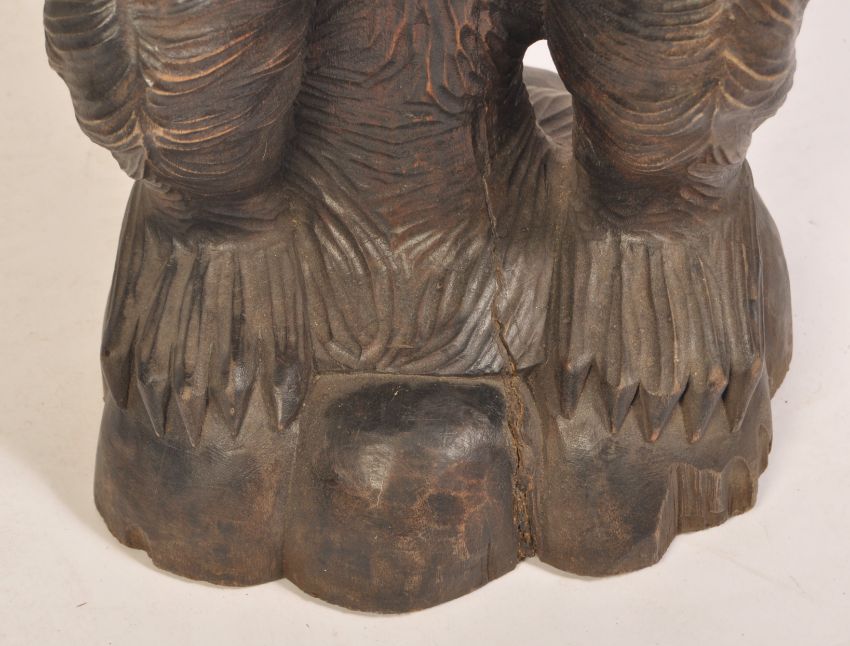 A 19th century carved Bohemian black forest novelty bear hat / coat stand. The carved bear stood upright to the base of a tree trunk, the upper reach branches for hats / coats etc. Measures 197cms high