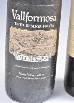 A bottle of Saint Emilion Jean Sans Terre 1970 together with a 1975 bottle of Vallformosa Vall Reserva