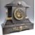 A 19th Century Victorian large and impressive slate marble mantel clock of architectural form by J Marti & Co France. The black dial having gilt brass chapter ring and faceted hands. Adorned with gilt brass ormolu plaques and face masks to sides. The movement bearing makers stamp. Measures 44cm x 49cm by 20cm.