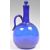 An early 19th Century Georgian Bristol Blue glass gin bottle decanter flask flagon of bulbous form having a cylindrical stem with ball finial stopper. Applied handle to side. Measures 21cm high.