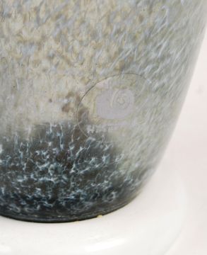 Hysteria - A late 20th century French retro vintage studio art glass vase having a tapering mottled white an blue transparent body with white foot. Label applied to side. Measures; 22cm.