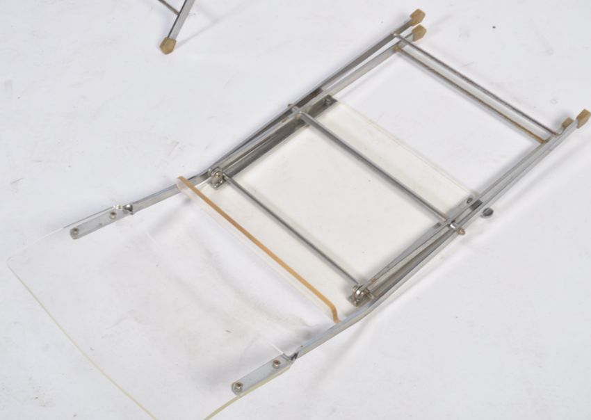 A pair of late 20th century retro vintage folding chairs comprising of a chromed steel frame with a clear perspex seat and backrest.