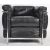 After Le Corbusier - LC2 - A good contemporary club / tub chair / armchair having a chromed tubular constructed frame with square padded cushions with black semi aniline leather upholstery.