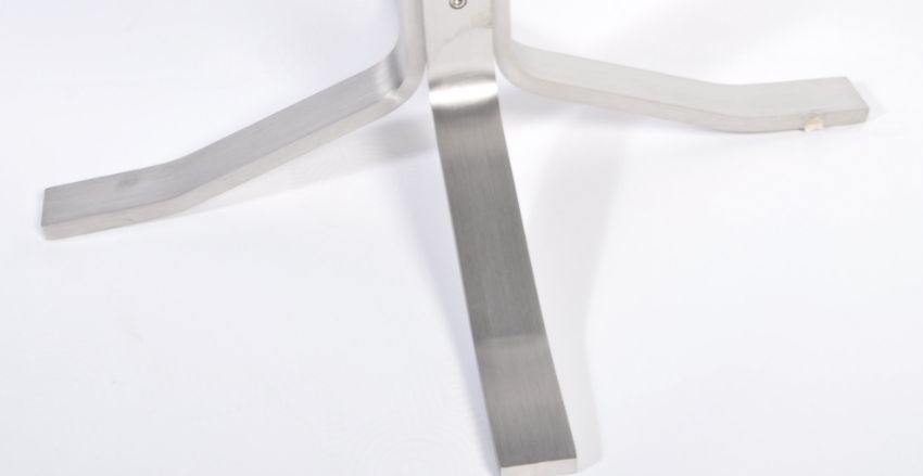 After Poul Volther - A contemporary steel Corona ottoman / footstool. The stool comprising of a splayed polished steel base egg shaped padded and black danish woollen upholstered top. Measures 42cm x 72cm x 46cm.