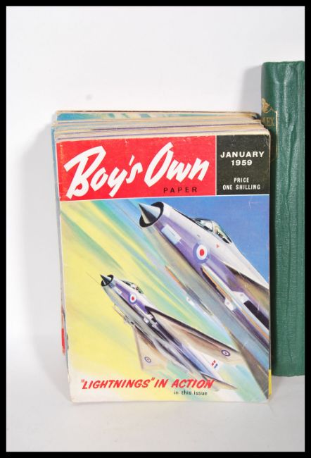 A collection of 20th Century world stamps within three albums and some loose to include early 20th Century Australian stamps, New Zealand , Malaysia, Malta, Spain, Korea, India, two penny red stamps etc. along with a selection of 1950's Boy's Own magazines.